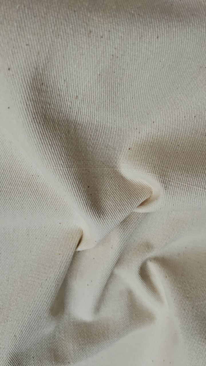Натуральна бавовняна тканина преміальної якості з елегантним світло-бежевим відтінком та характерним діагональним переплетінням. Завдяки щільній структурі має вишуканий рубчиковий візерунок та відмінно тримає форму. Матеріал універсальний, з високою зносостійкістю та приємними тактильними властивостями.