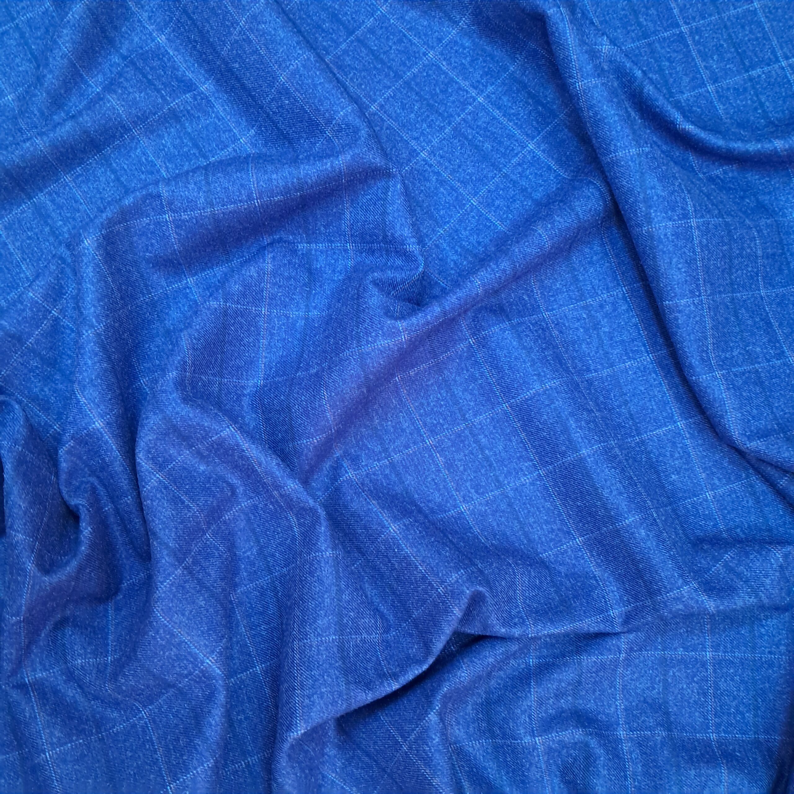 Італійська шерсть у темно-синю клітинку – преміум тканина для елегантних костюмів, брюк та суконь.