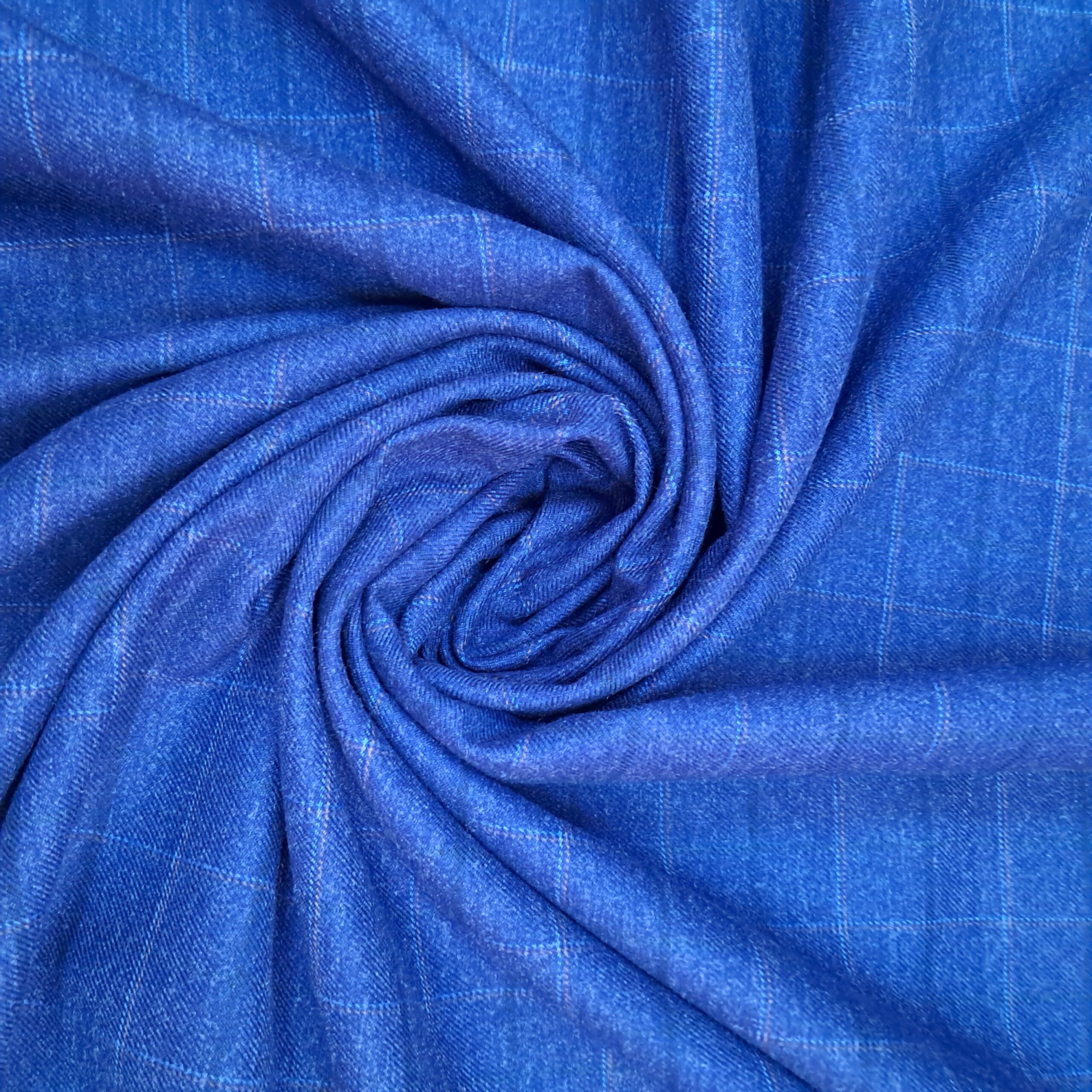 Класична костюмна тканина у темно-синю клітинку – втілення елегантності та вишуканості. Виготовлена зі 100% натуральної вовни італійського виробництва, вона поєднує преміальну якість, комфорт і довговічність. М’яка фактура приємна на дотик, а завдяки пластичності тканина чудово драпірується та зберігає форму виробів. Це універсальний матеріал для стильного та практичного гардеробу, який підкреслить статус і смак.