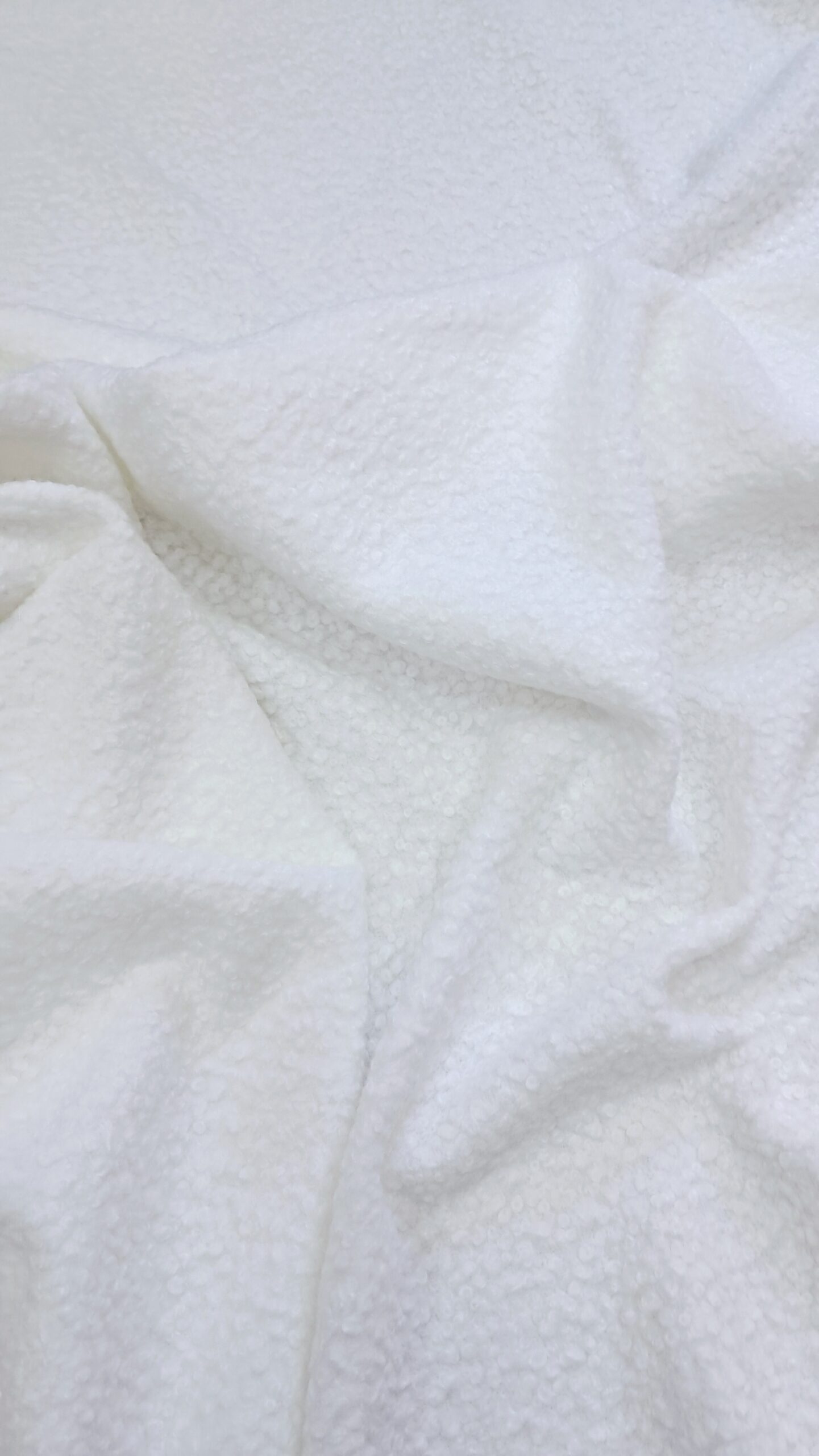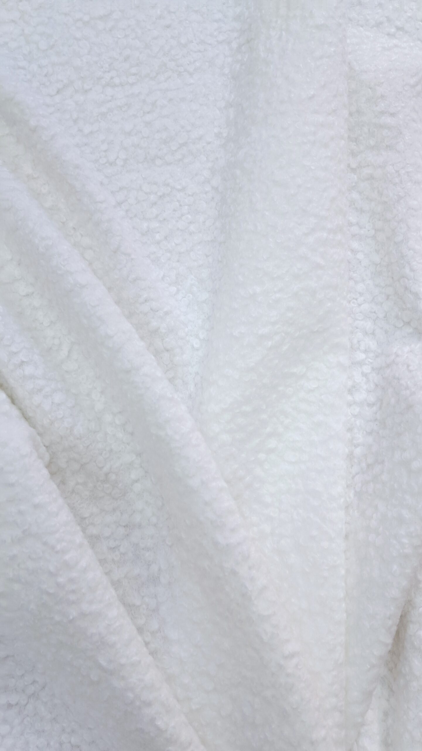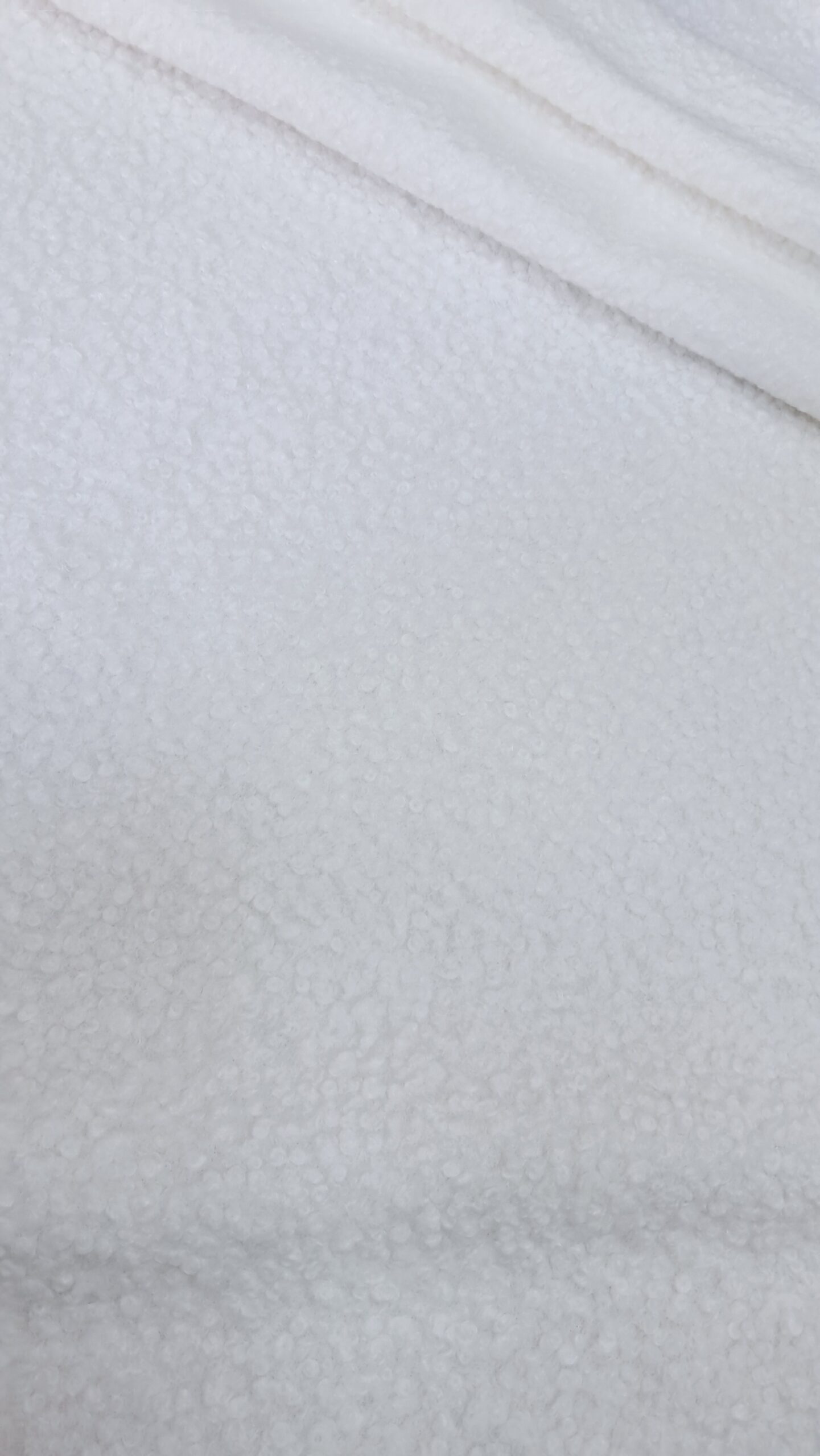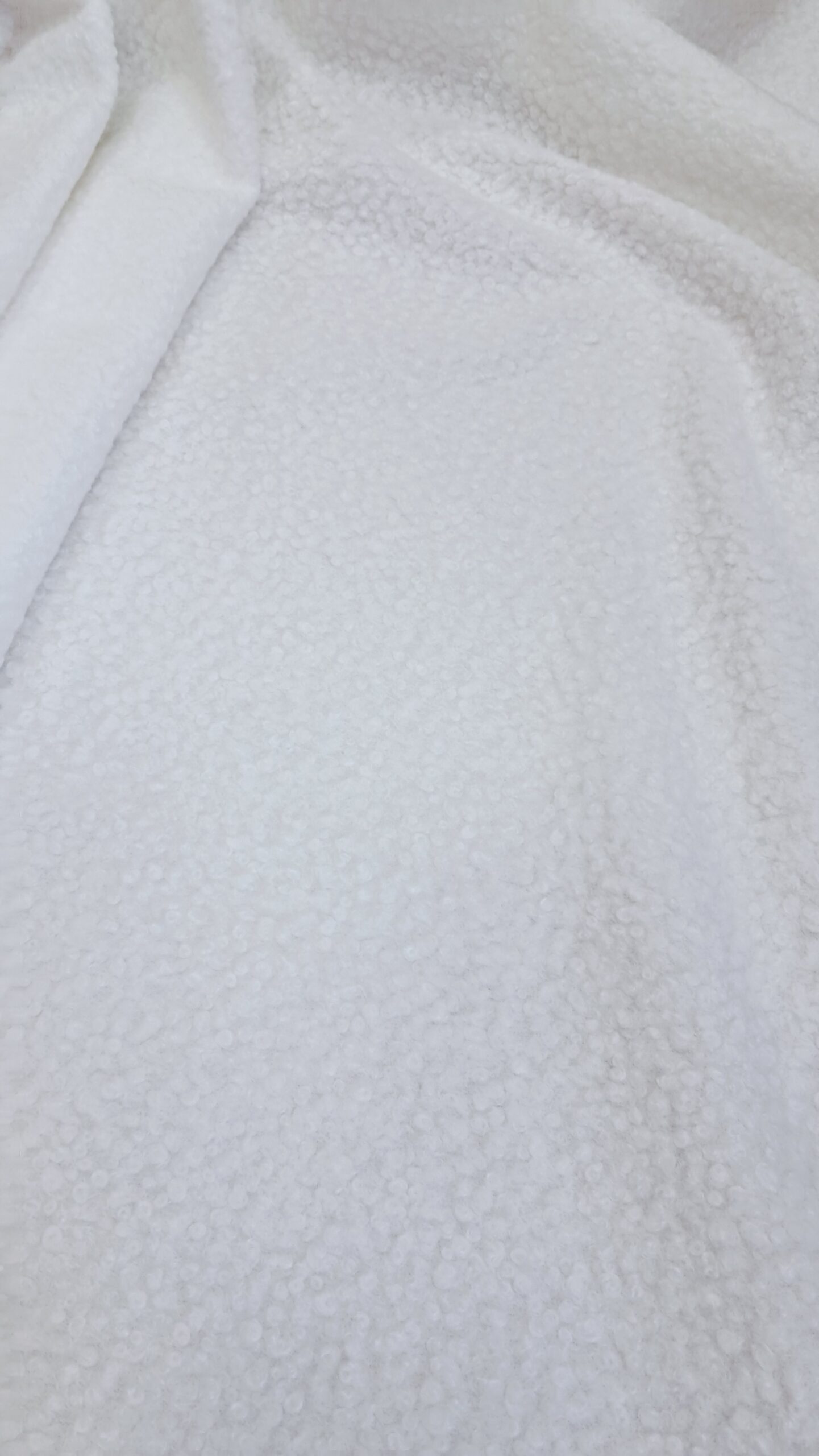 Тип тканини: Ворсиста, об’ємна, з вираженою вузликовою фактурою (Букле), що імітує хутро ведмедика Тедді.