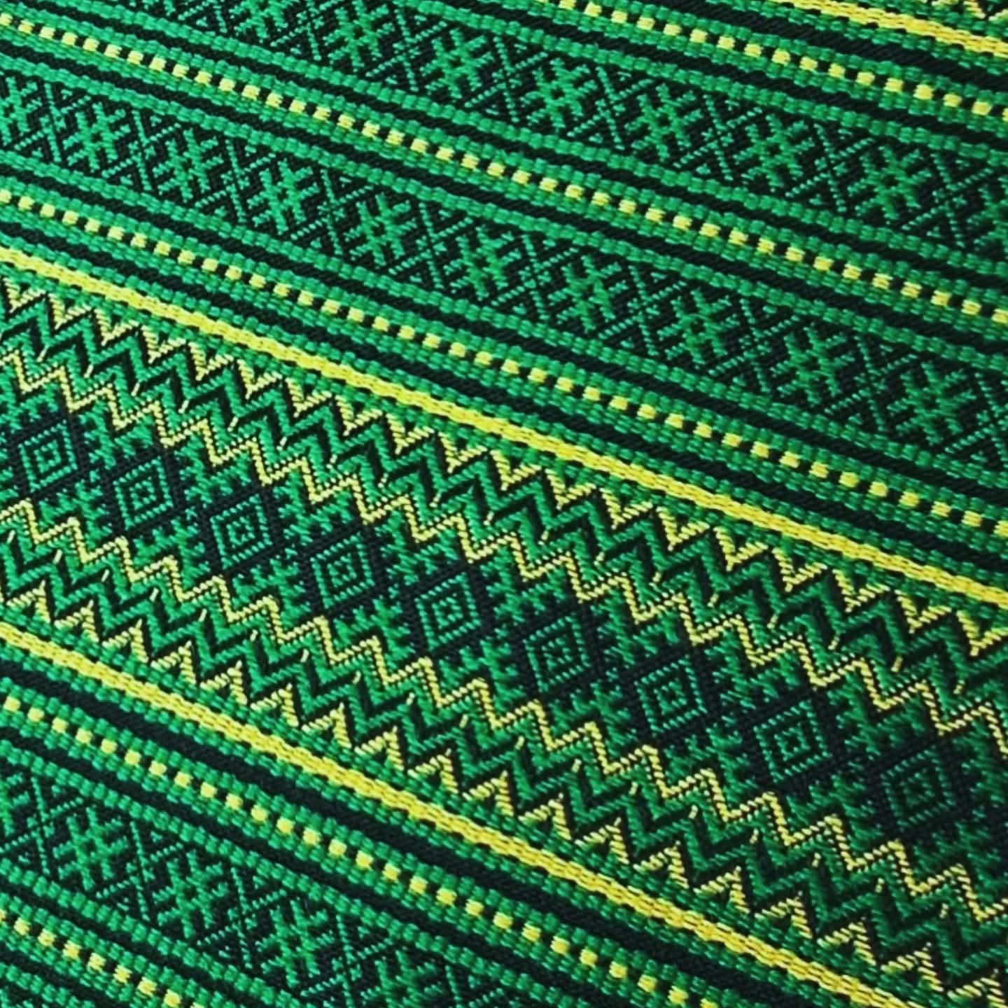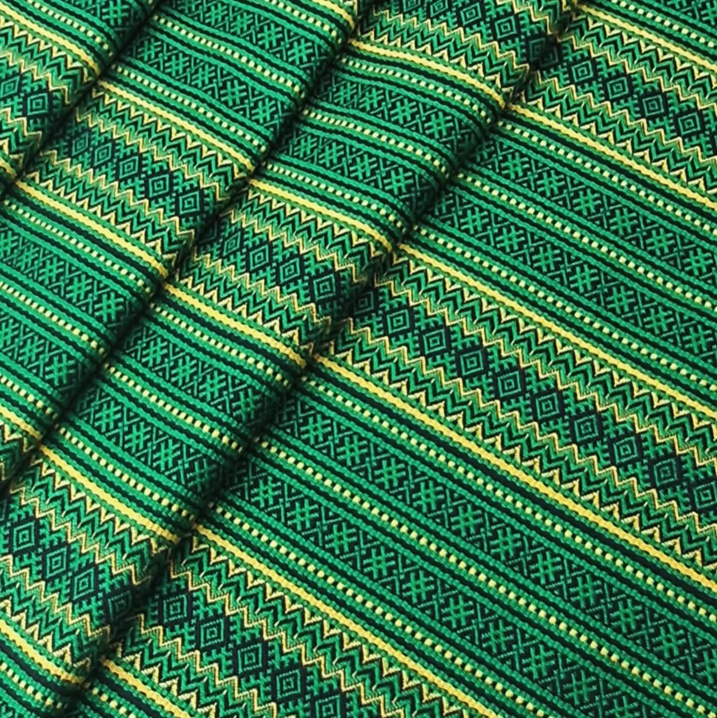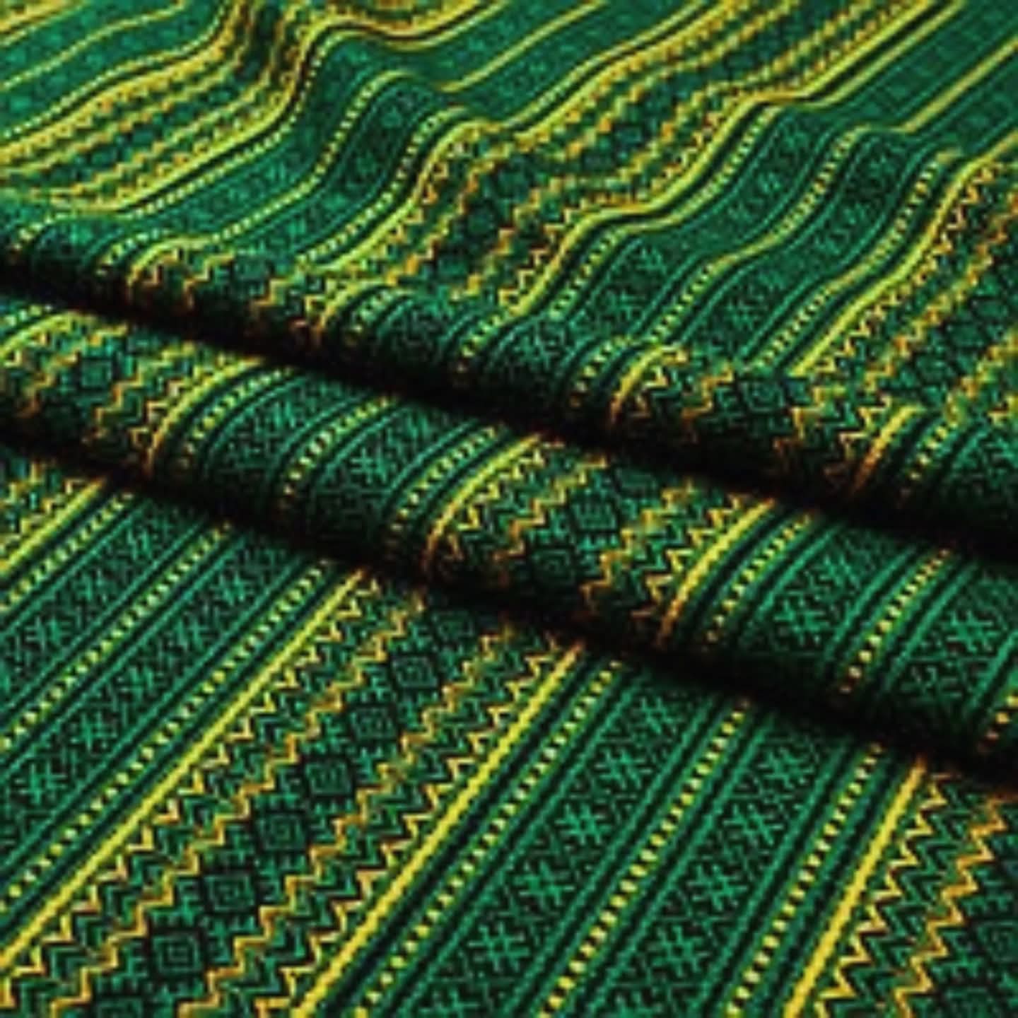 Ця тканина — сучасне втілення автентичного українського стилю, що вражає своєю гармонією та витонченістю. Насичений зелений фон ідеально поєднується з білим витканим орнаментом, що створює ефект об’ємної вишивки. Завдяки складному жакардовому переплетенню, візерунок є частиною самого полотна, що робить його довговічним та неймовірно цікавим на дотик.