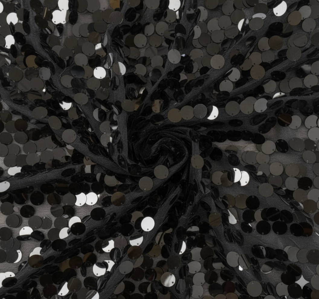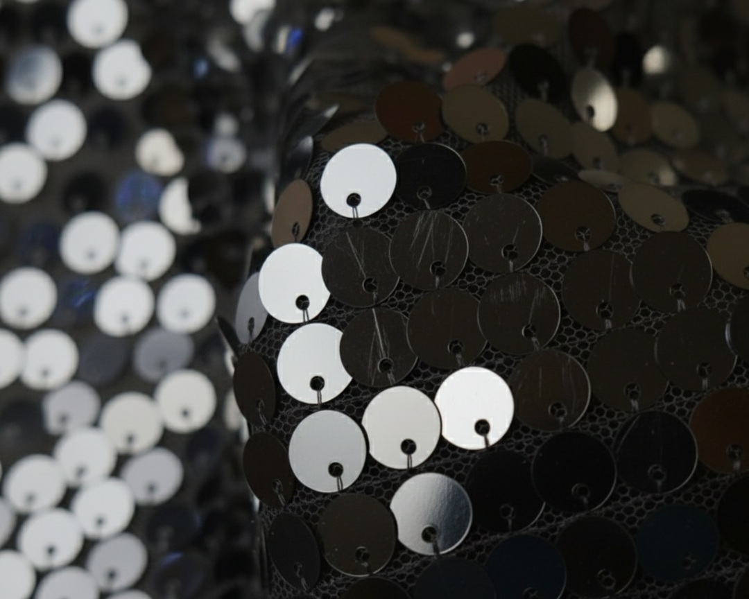 Опис тканини з великими паєтками: “Сяйво Копійок”  🌟