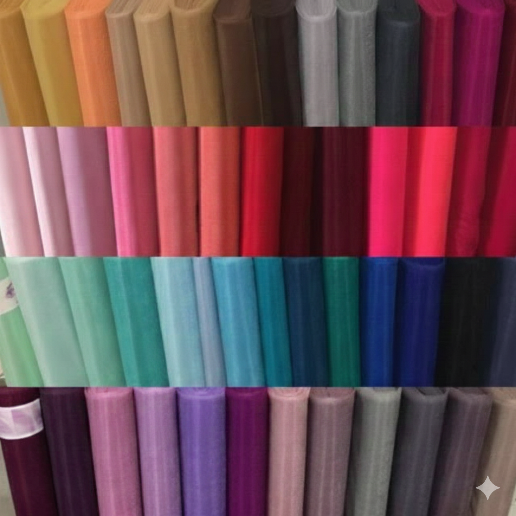 Фатін середньої жорсткості ідеально підходить для пошиття спідниць, створення бантів, оформлення фотозон, святкових декорацій та новорічних композицій. Чудово формується, легко збирається та тримає об’єм. Матеріал представлений у великому виборі відтінків — від ніжних пастельних до насичених яскравих.