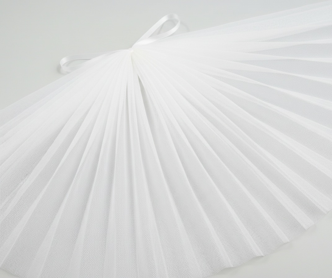 «Фатін середньої жорсткості — легкий, повітряний матеріал, який чудово тримає форму. Підходить для фотозон, бантів, декору та об’ємних суконь.»