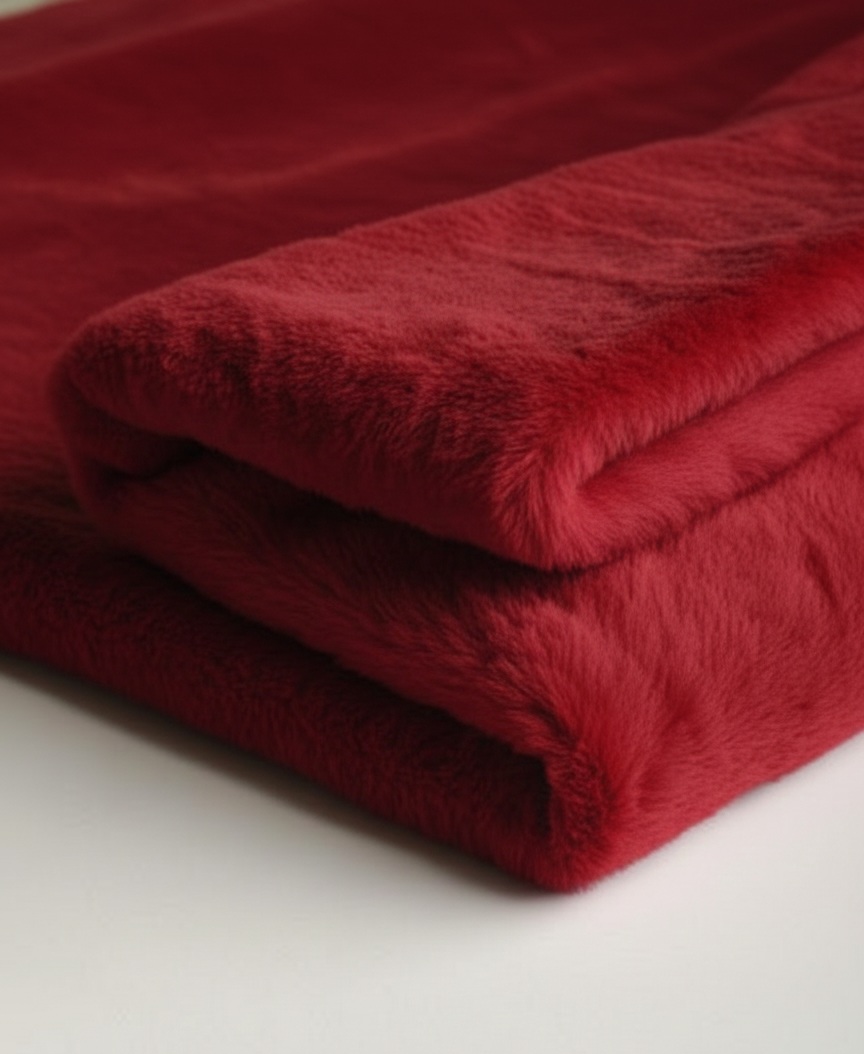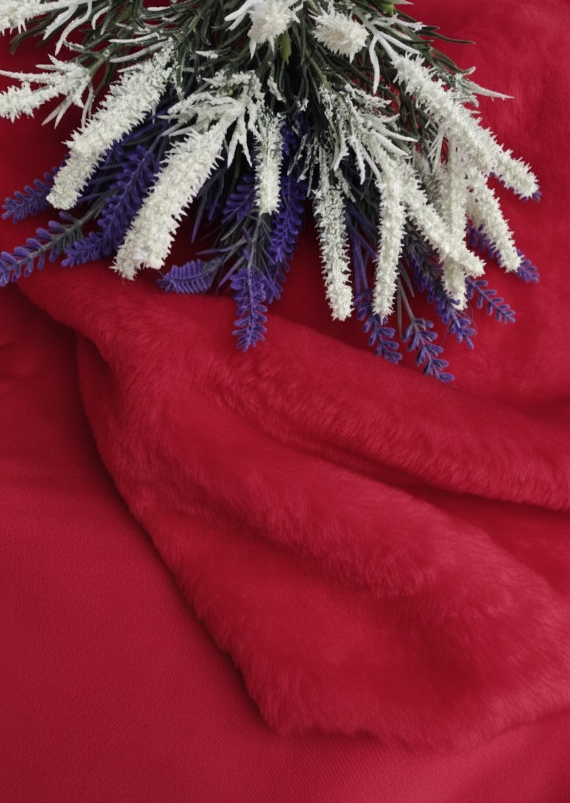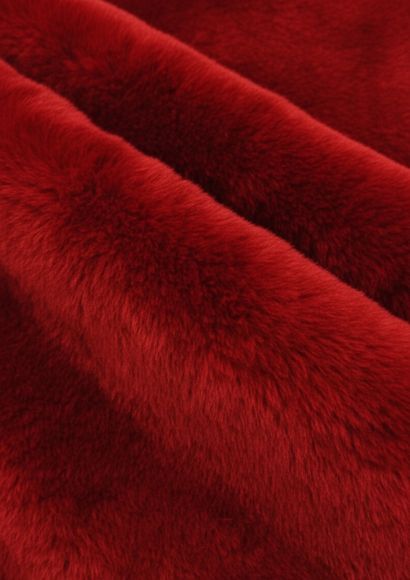 Це м’яке та затишне штучне хутро у червоному відтінку. Воно ідеально імітує натуральний матеріал, але при цьому є повністю етичним та значно простішим у догляді. Завдяки короткій, рівномірній та щільній ворсистій структурі тканина має ніжний, плюшевий вигляд і дарує неймовірне відчуття тепла та комфорту.