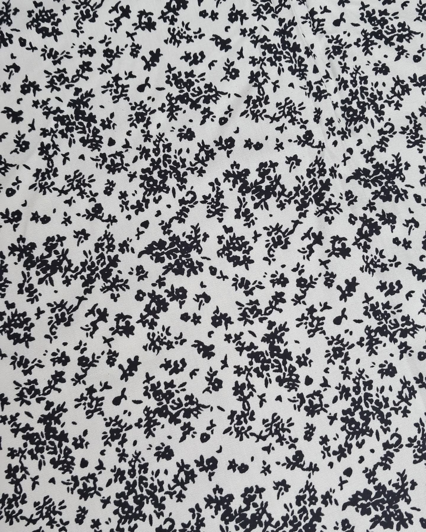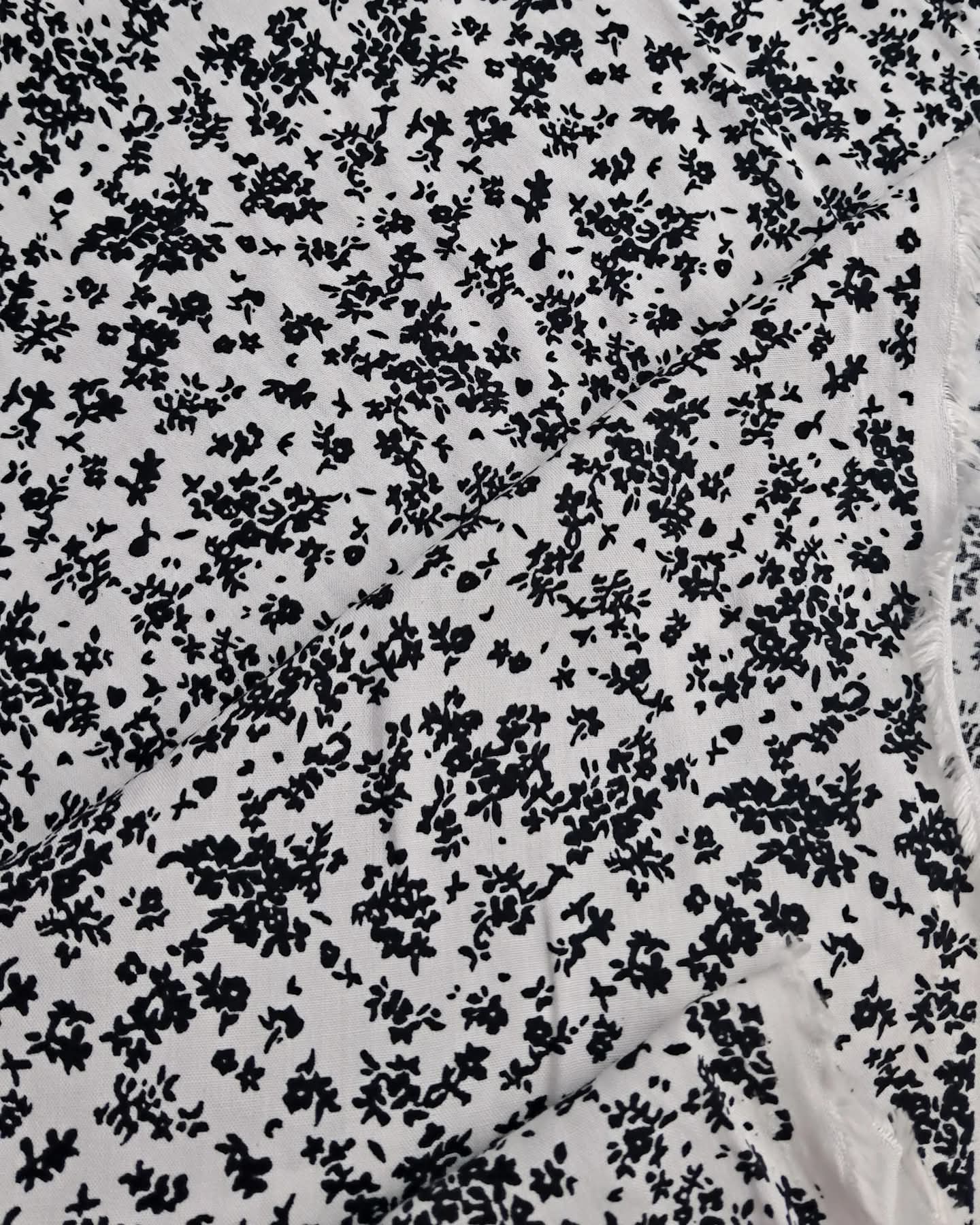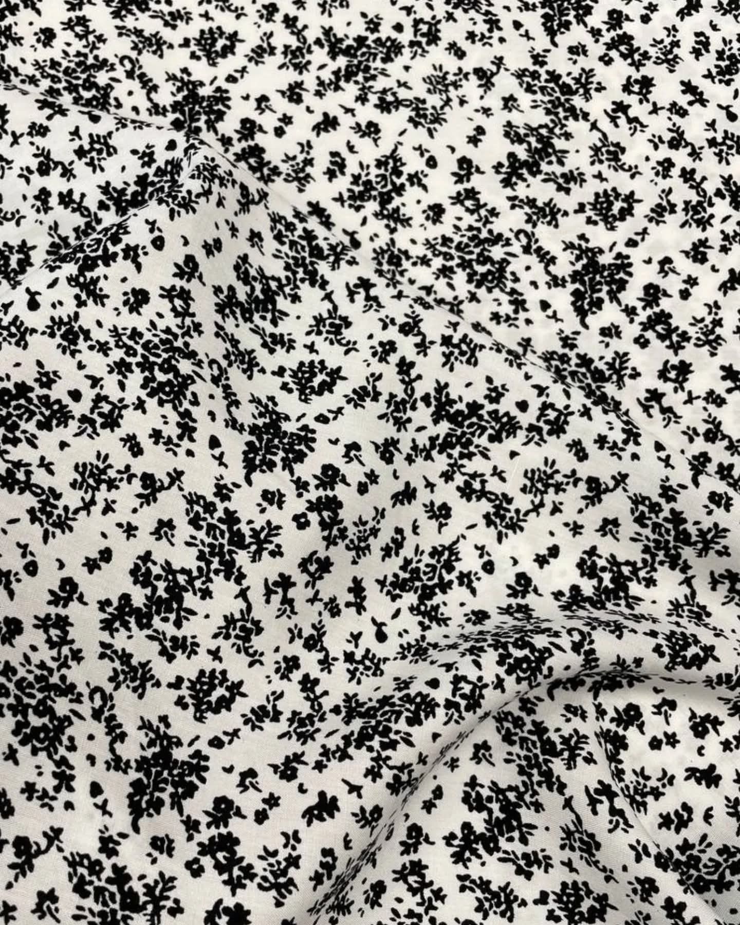 Цей штапель — справжнє втілення ніжності та легкості. Тканина м’яка, як шовк, і дихаюча, як бавовна, а дрібний квітковий принт на білому фоні створює відчуття свіжості та безтурботності. Ідеальний для літніх суконь, блуз та сарафанів, цей штапель дарує комфорт і дозволяє шкірі дихати. Створіть свій ніжний образ!