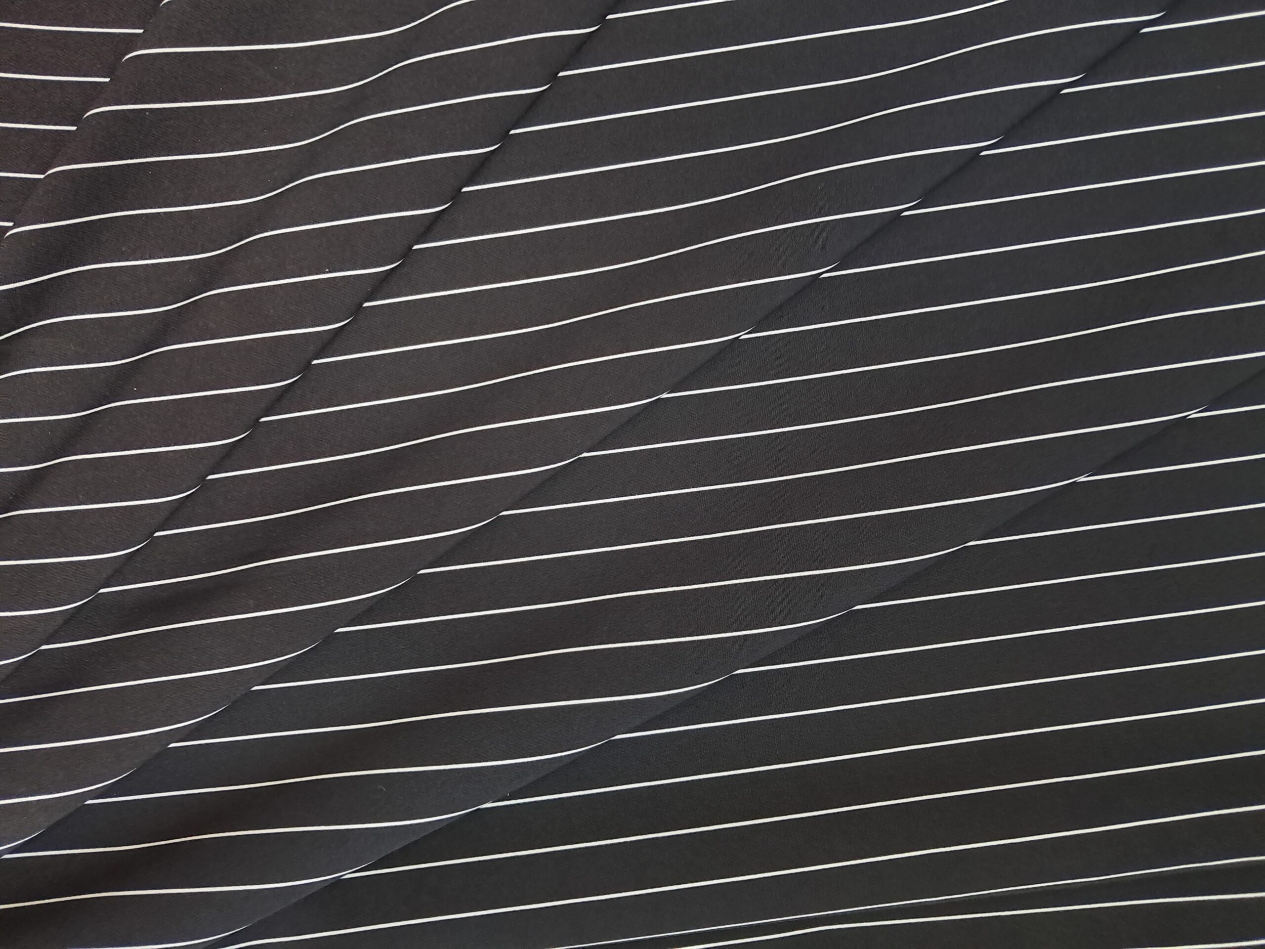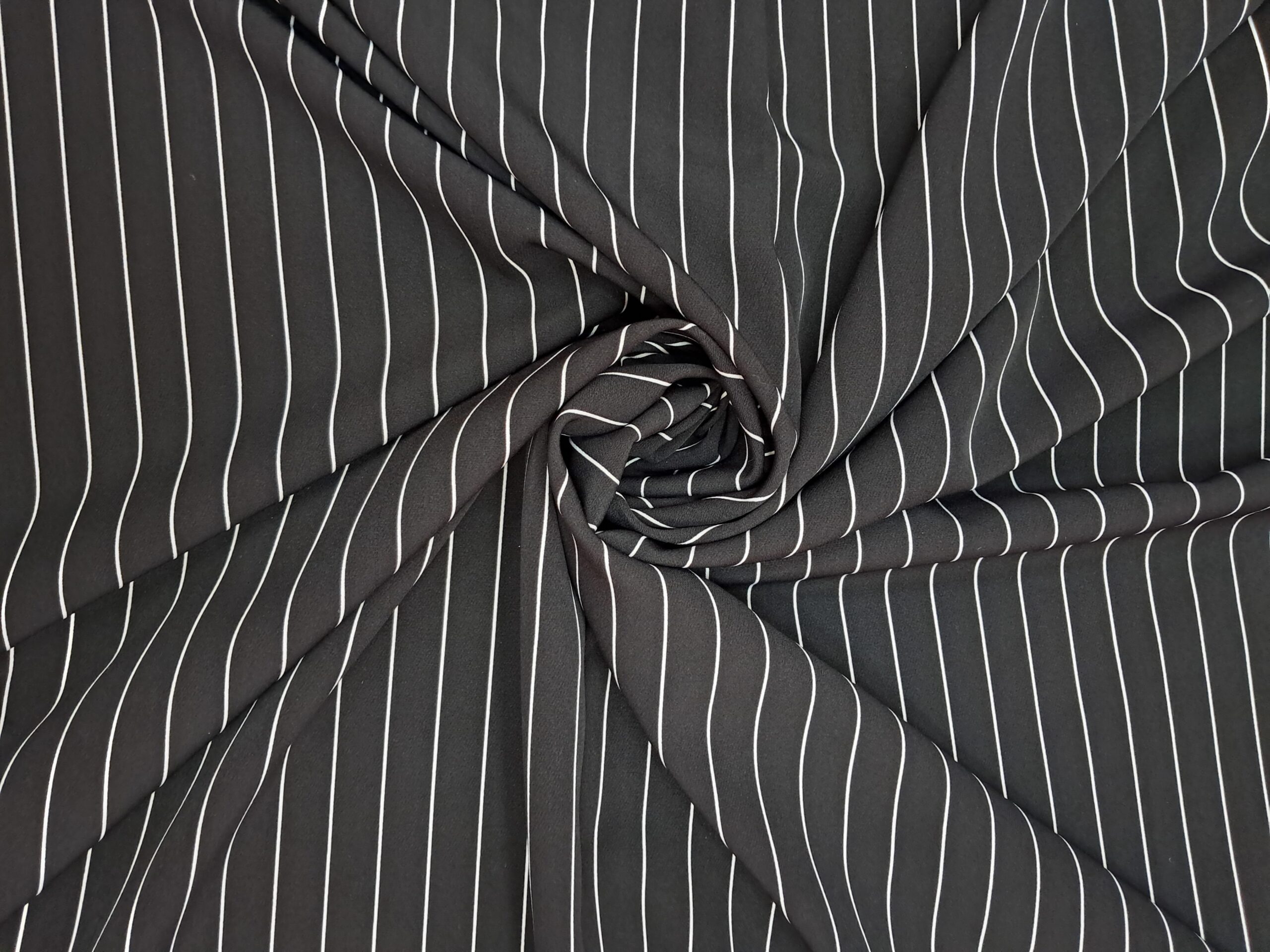 Поєднання класики та практичності. Наша стрейчева смужка — це універсальна тканина для ділового гардероба. Чорна матова основа з білою смужкою створює строгий, але водночас стильний образ. Завдяки вмісту спандексу, тканина чудово сідає по фігурі, не мнеться та витримує активний ритм вашого життя. Ідеальний вибір для тих, хто цінує якість та час.”