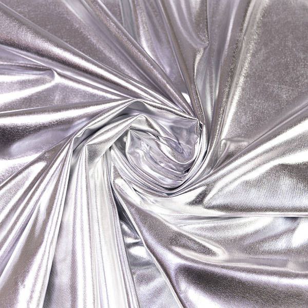 Високоеластичний біфлекс зі срібним металевим блиском. Ідеальний для пошиття спортивного, танцювального та сценічного одягу. Щільність 180 г/м², ширина 1,50 м. Склад: 95% поліестер, 5% еластан. Виробник – Південна Корея. Практичний у догляді, довговічний та зносостійкий.