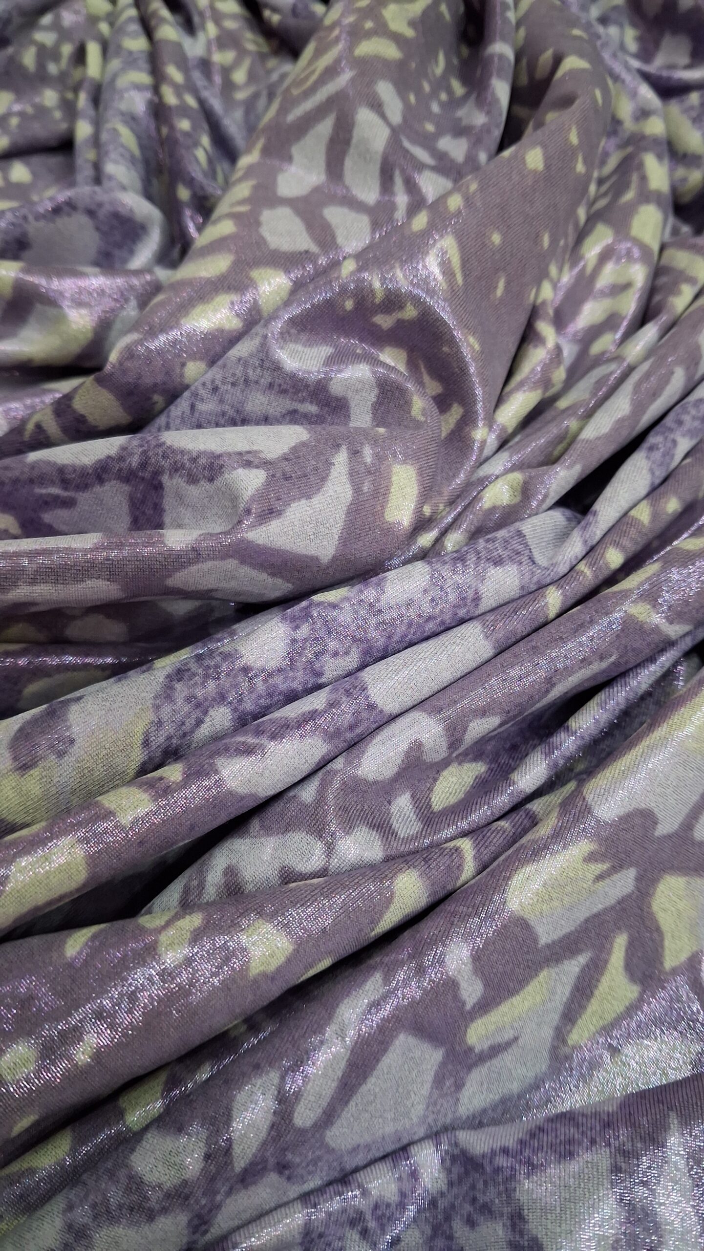 Еластичний біфлекс-ластік з ефектним напиленням. Тканина ідеально тягнеться в 4 сторони, повторюючи кожен рух. Має благородний блиск, що робить її ідеальною для танцювальних костюмів, хореографії, ошатних гольфів та суконь.