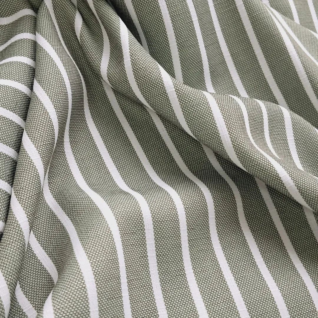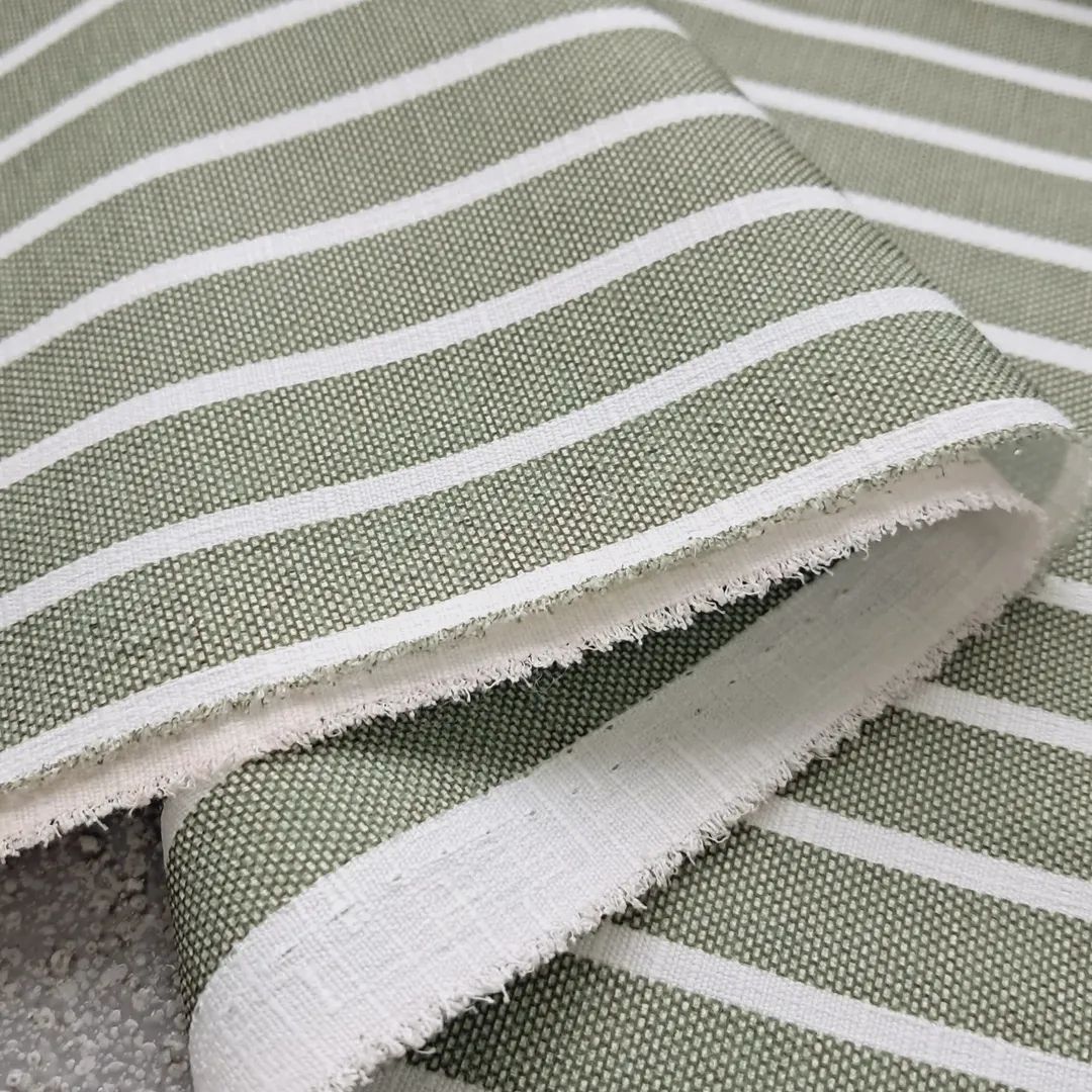 Натуральний лляний жакард — це високоякісна двостороння тканина, яка поєднує в собі міцність льону та унікальний витканий смугастий візерунок. Завдяки особливій технології плетіння, візерунок формується під час виробництва, а не наноситься зверху. Це забезпечує його стійкість до вигоряння та прання. Виворітна сторона тканини має однотонну білу основу, що робить її ідеальною для використання без підкладки. Полотно м’яке, приємне на дотик і має характерну шляхетну фактуру льону.