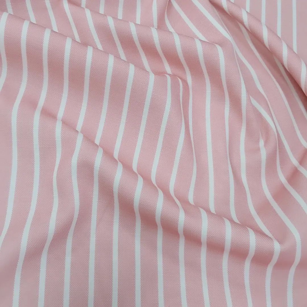 Натуральний лляний жакард — це високоякісна двостороння тканина, яка поєднує в собі міцність льону та унікальний витканий смугастий візерунок. Завдяки особливій технології плетіння, візерунок формується під час виробництва, а не наноситься зверху. Це забезпечує його стійкість до вигоряння та прання. Виворітна сторона тканини має однотонну білу основу, що робить її ідеальною для використання без підкладки. Полотно м’яке, приємне на дотик і має характерну шляхетну фактуру льону.