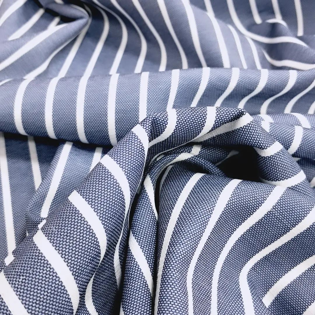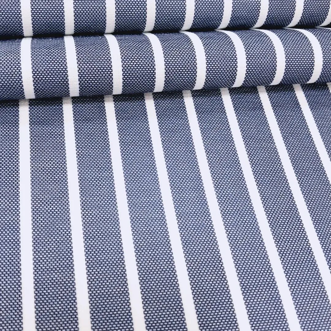 Натуральний лляний жакард — це високоякісна двостороння тканина, яка поєднує в собі міцність льону та унікальний витканий смугастий візерунок. Завдяки особливій технології плетіння, візерунок формується під час виробництва, а не наноситься зверху. Це забезпечує його стійкість до вигоряння та прання. Виворітна сторона тканини має однотонну білу основу, що робить її ідеальною для використання без підкладки. Полотно м’яке, приємне на дотик і має характерну шляхетну фактуру льону.