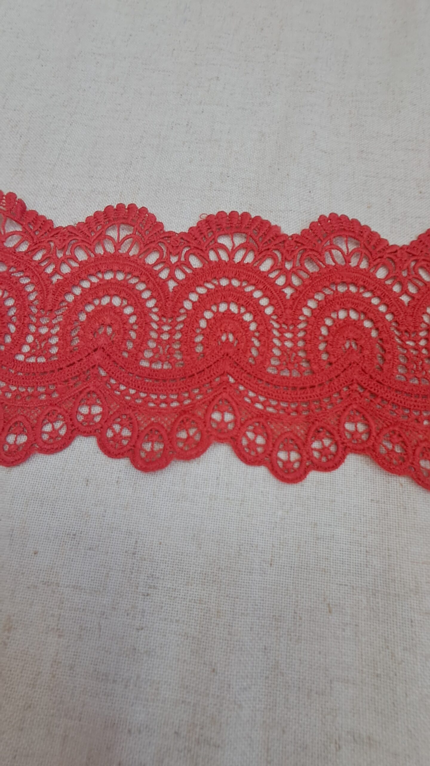 Це високоякісне декоративне мереживо виготовлене з натуральної бавовняної (ХБ) нитки. Відрізняється м’якою, приємною на дотик текстурою та насиченими кольорами. Представлено в асортименті з різноманітними, чітко вираженими візерунками та різною шириною, що робить його універсальним для оздоблення. Мереживо міцне, зносостійке та зберігає форму після прання (за умови дотримання правил догляду).
