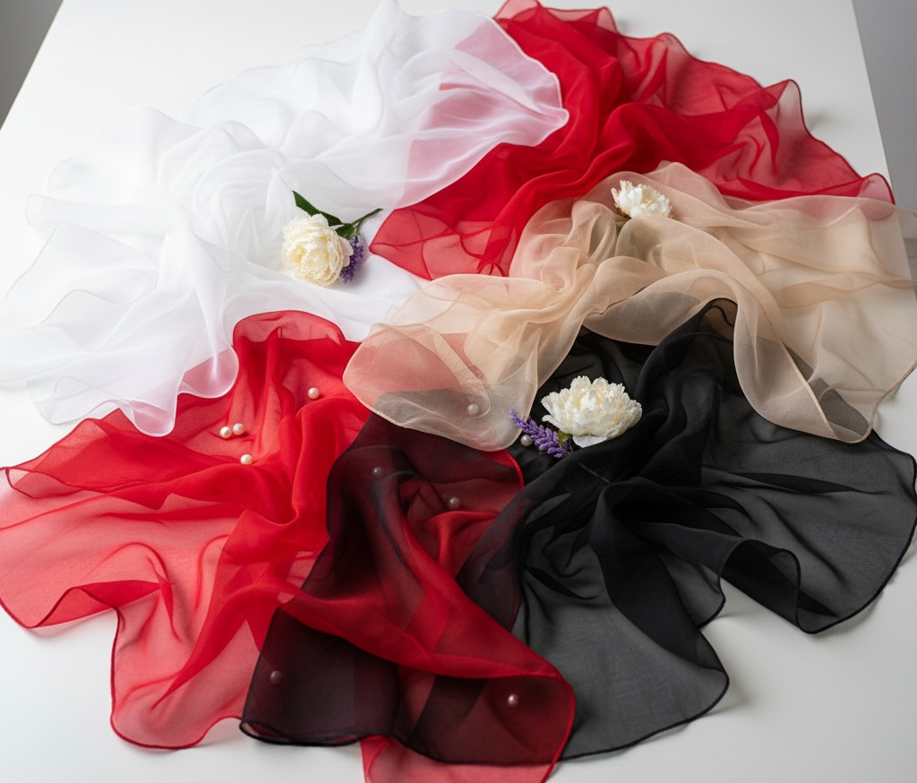 Органза практично завжди є синтетичною тканиною, що забезпечує її ключові властивості – прозорість, жорсткість та зносостійкість.