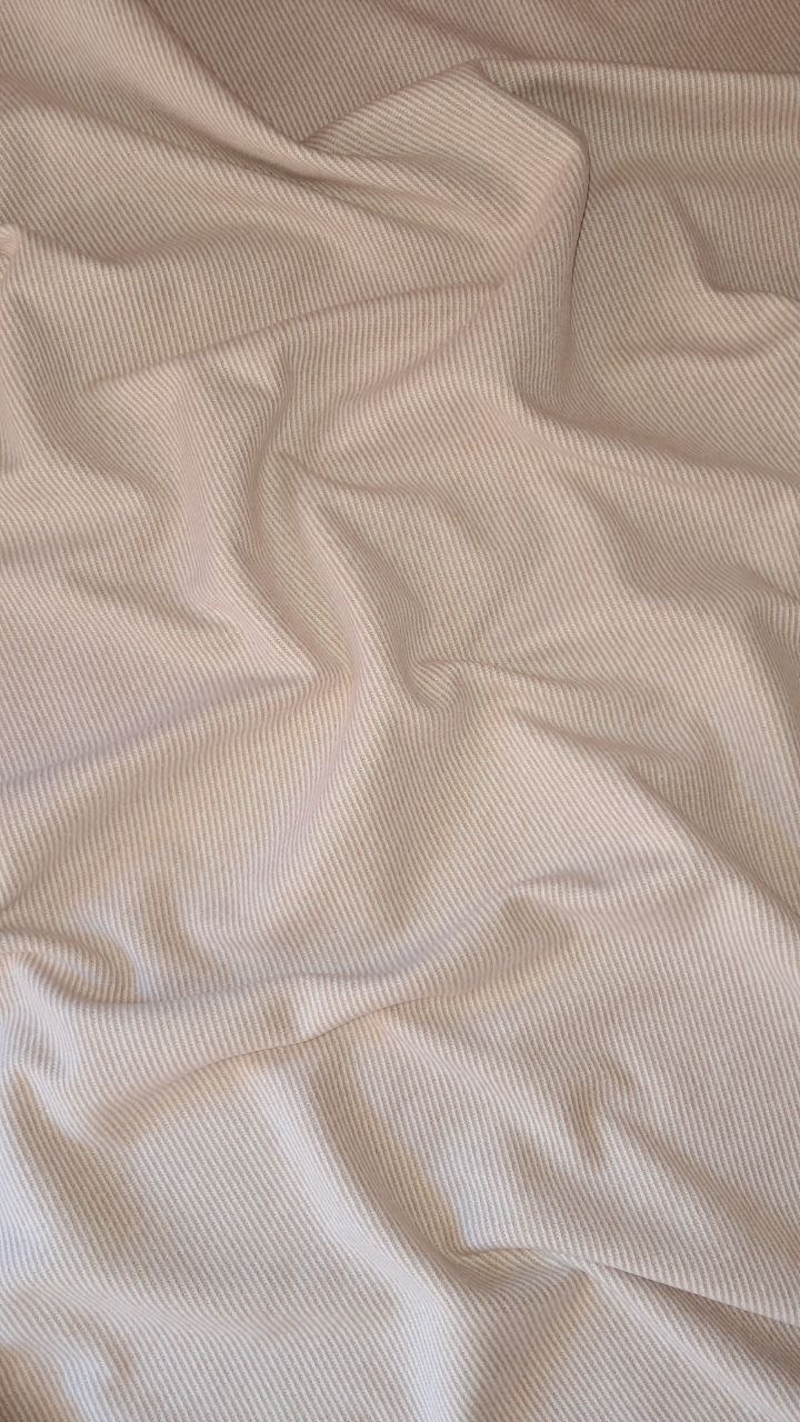 Тканина має високу щільність – 480 г/м², що дозволяє їй добре тримати форму, а невелика домішка спандексу надає мінімальної еластичності. Вона добре пропускає повітря та не електризується.