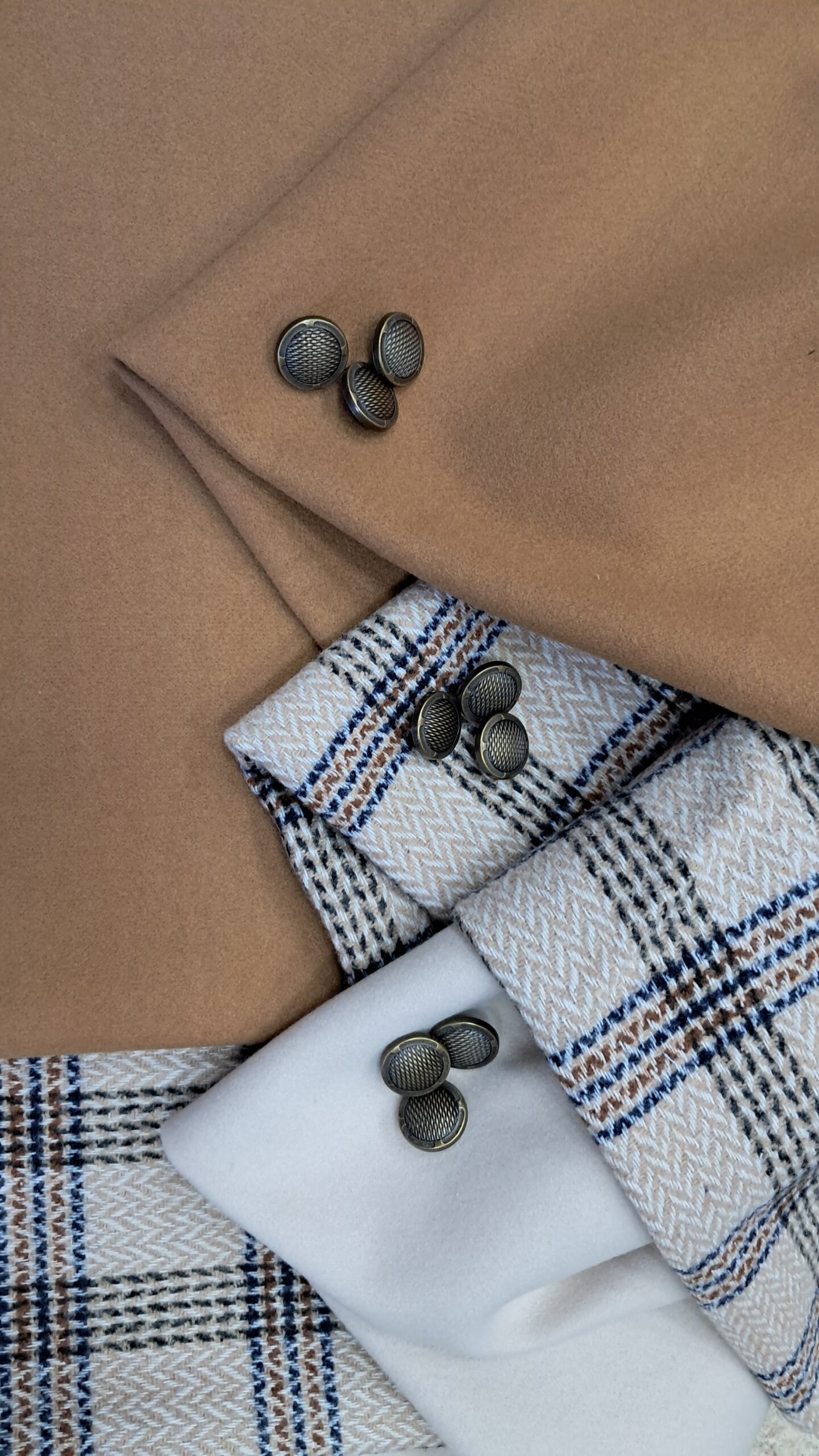 Пальтова тканина в клітинку — щільний, теплий і зносостійкий матеріал вагою 600 г/м², що ідеально підходить для пошиття стильних пальт і верхнього одягу. Завдяки комбінованому складу (20% вовна, 20% віскоза, 60% поліестер) тканина є міцною, не кошлатиться і чудово зберігає форму. Колір: темно-синій з червоною клітинкою.