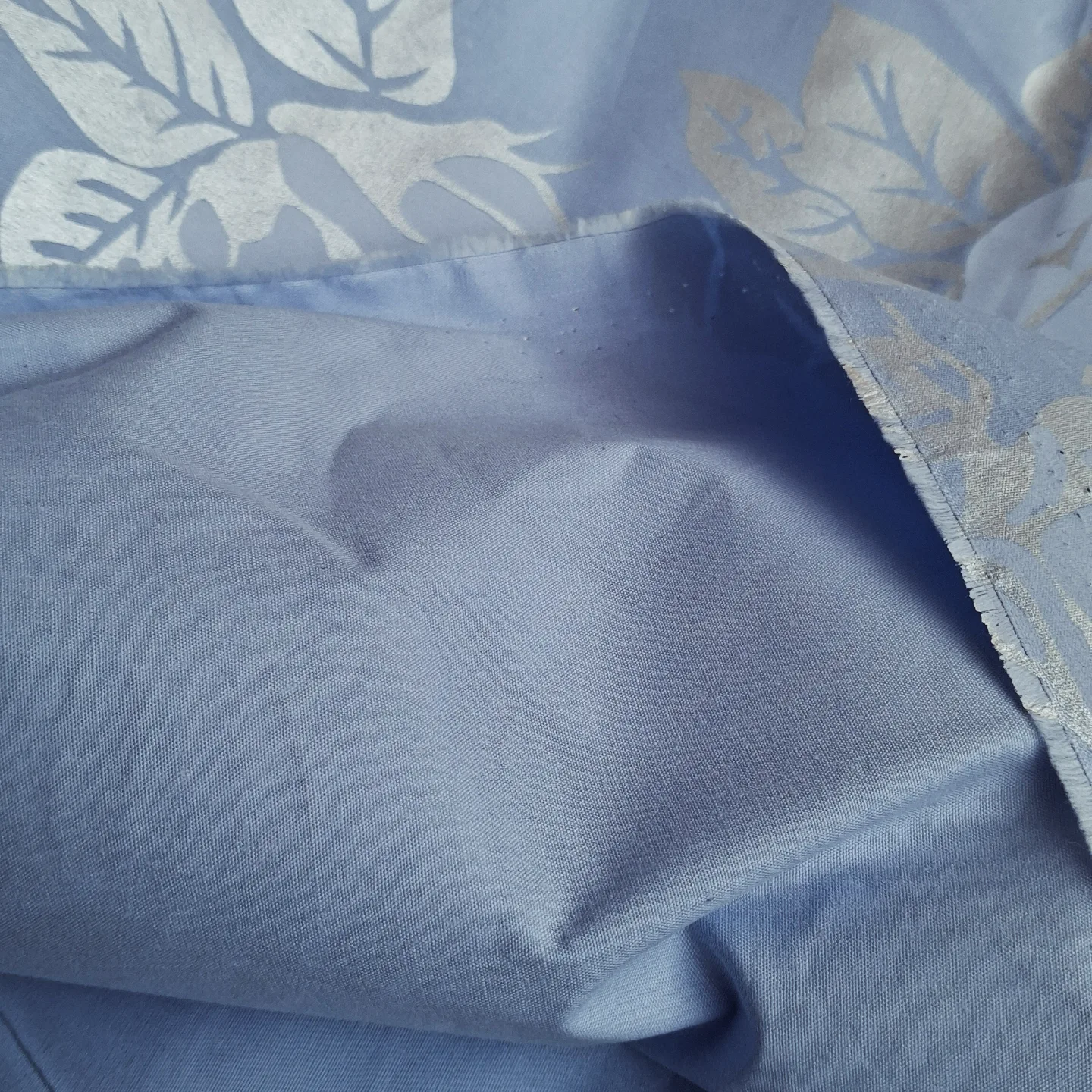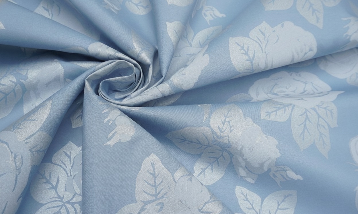 Тік набивний – це щільна бавовняна тканина з красивим квітковим принтом на ніжному блакитному тлі. Матеріал виготовлений за технологією саржевого плетіння, що забезпечує високу міцність та довговічність виробу. Тканина приємна на дотик, гіпоалергенна та чудово пропускає повітря. Завдяки своїй щільності, тік набивний ідеально тримає форму та зберігає яскравість кольорів навіть після багаторазових прань. Витончений принт з трояндами додає елегантності та затишку будь-якому інтер’єру.