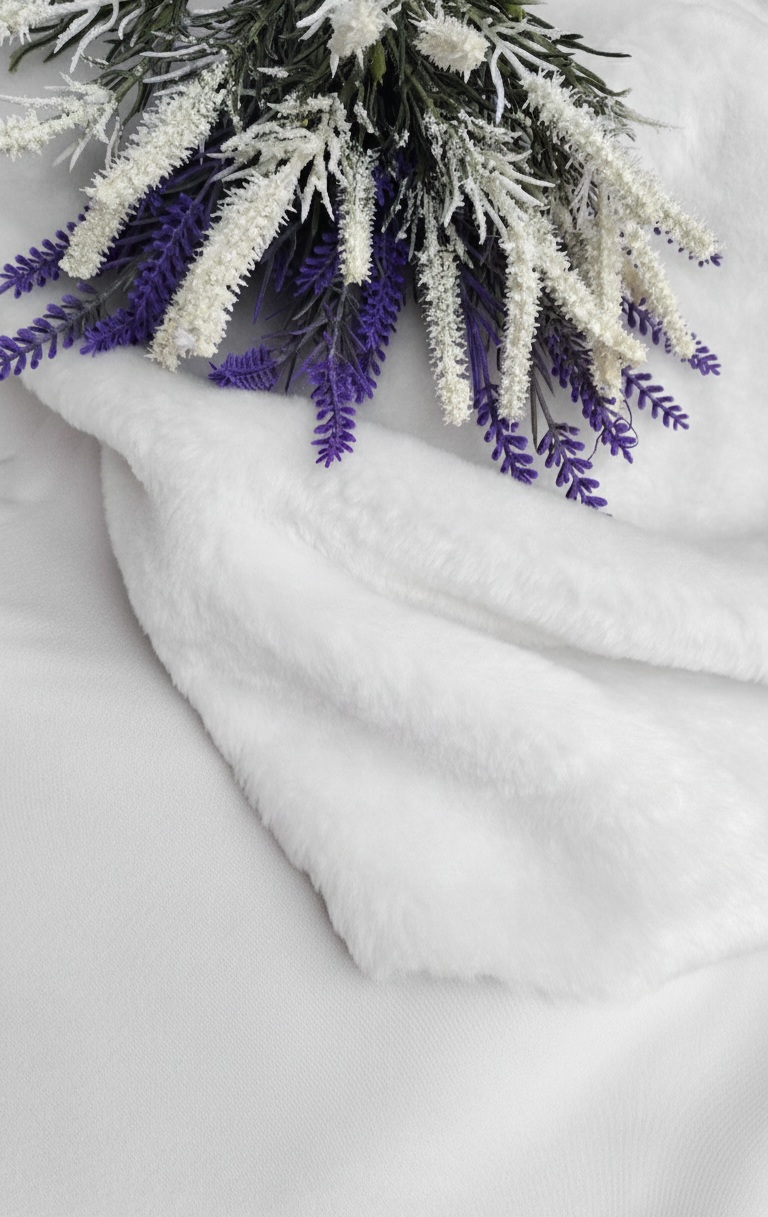 ​Це м’яке та затишне штучне хутро у білому відтінку. Воно ідеально імітує натуральний матеріал, але при цьому є повністю етичним та значно простішим у догляді. Завдяки короткій, рівномірній та щільній ворсистій структурі тканина має ніжний, плюшевий вигляд і дарує неймовірне відчуття тепла та комфорту. Білий колір додає виробам особливої м’якості, романтичності та унікальності.