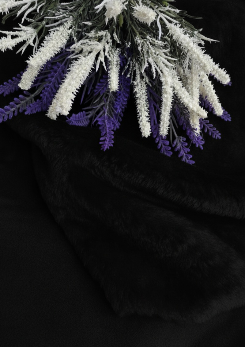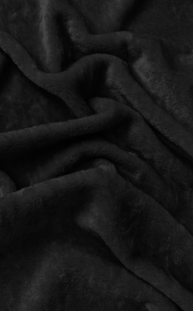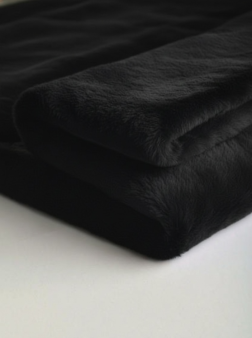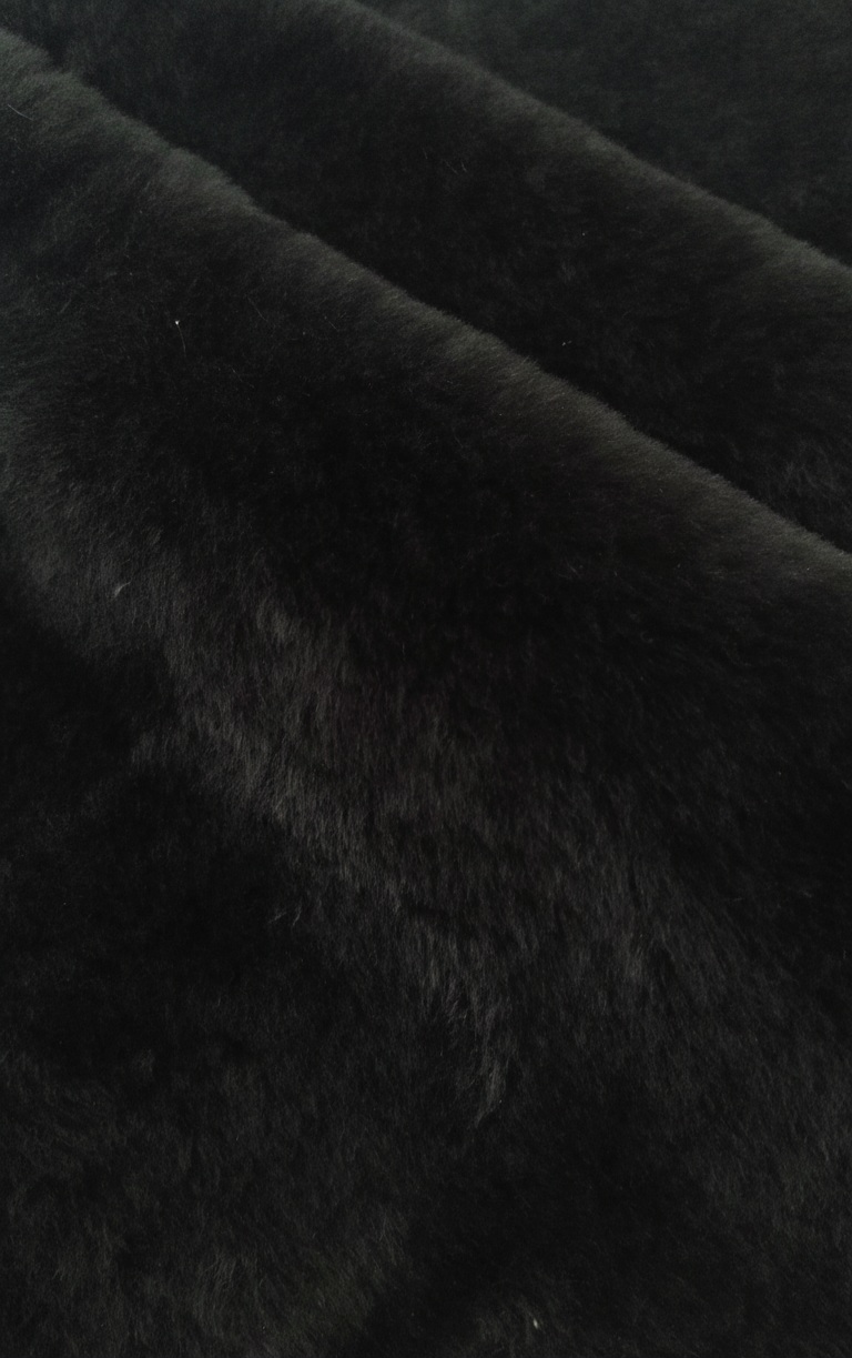 Це м’яке та затишне штучне хутро у чорному відтінку. Воно ідеально імітує натуральний матеріал, але при цьому є повністю етичним та значно простішим у догляді. Завдяки короткій, рівномірній та щільній ворсистій структурі тканина має ніжний, плюшевий вигляд і дарує неймовірне відчуття тепла та комфорту.