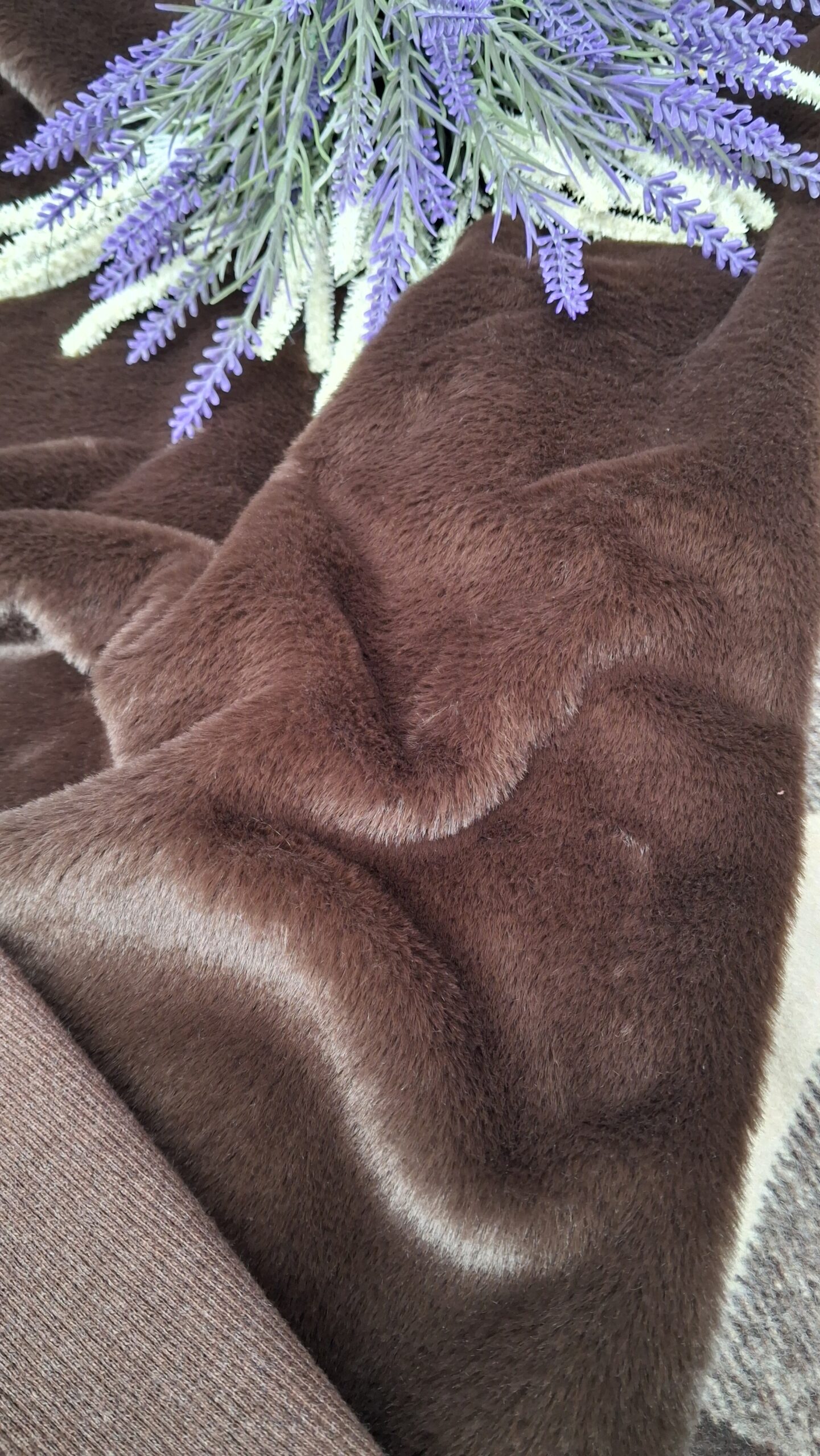 Розкішне, насичене коричневе хутро кольору темного шоколаду. Має густий, м’який і дуже приємний на дотик короткий ворс, що ідеально імітує натуральний велюр або хутро.