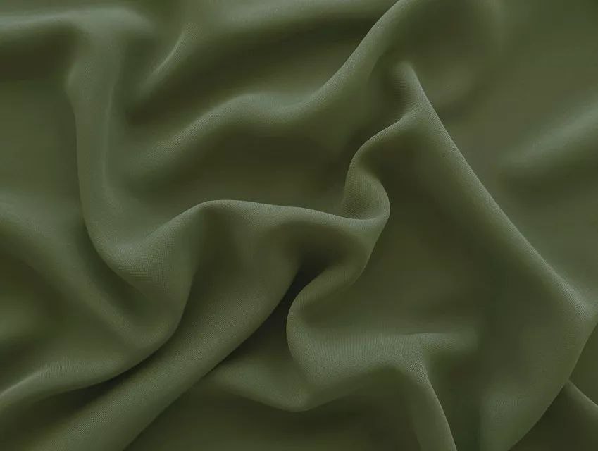 Тканина “Шовк Ізумруд”, ширина 1.50 м. Склад: 70% віскоза, 25% поліестер, 5% еластан. Має матове покриття, добре драпірується, не залишає плям від води. Колір — хакі. Ідеальна для вечірніх суконь, блуз, костюмів. Догляд: делікатне прання при 30°C.