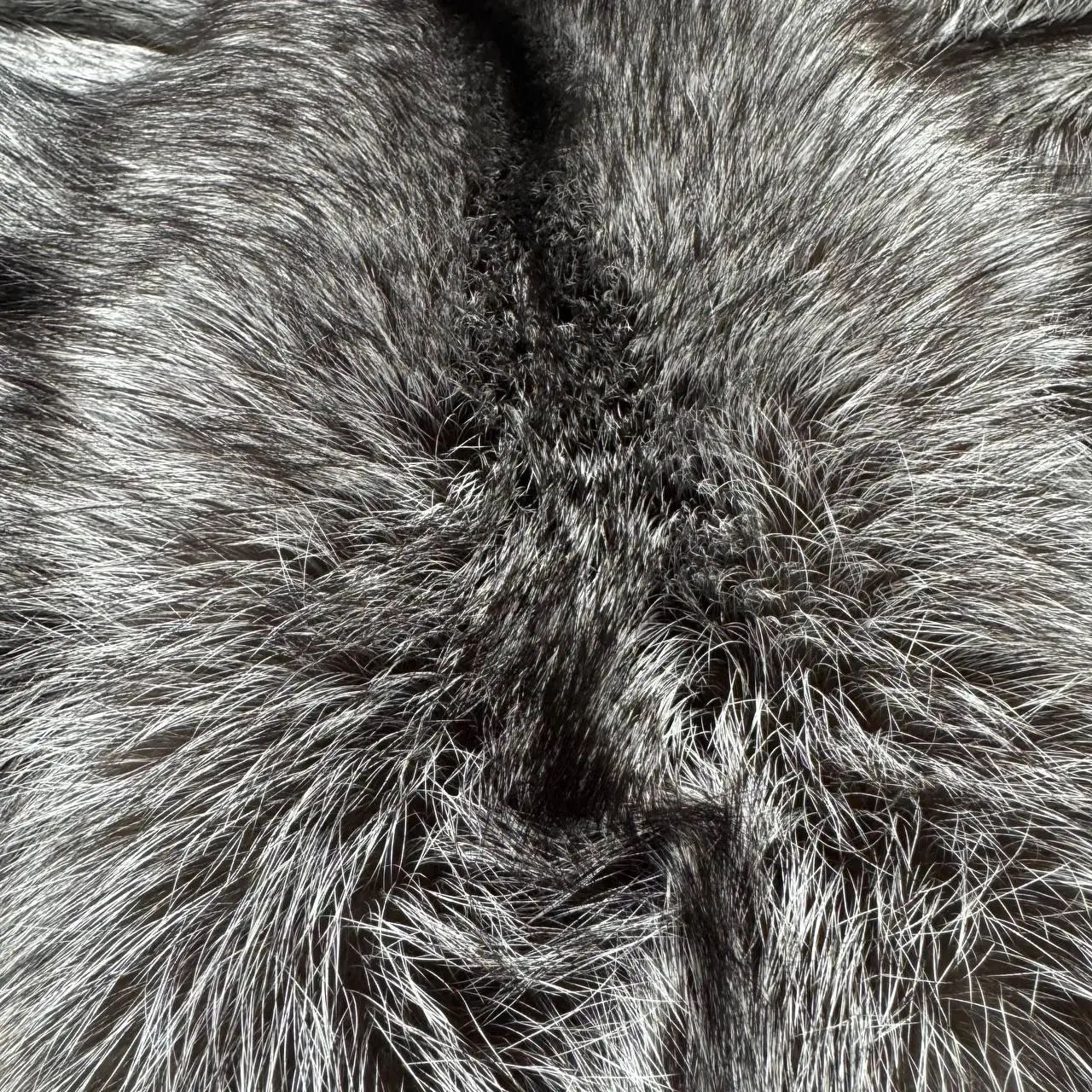 Це високоякісний синтетичний матеріал, який має густий ворс довжиною 70 мм з характерним для чорнобурої лисиці забарвленням: чорна основа і сірі кінчики. Це надає йому природного та розкішного вигляду.