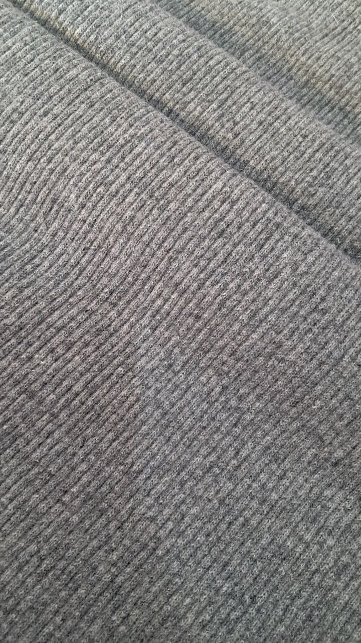 Вовняний трикотаж “Вульф” — це тепла, м’яка та еластична тканина преміумкласу, вироблена в Італії. Вона має характерну рельєфну фактуру у вигляді поздовжніх рубчиків, що надає їй стильного та сучасного вигляду. Завдяки 100% вовняному складу, матеріал чудово зберігає тепло та дозволяє шкірі дихати, забезпечуючи максимальний комфорт при носінні.
