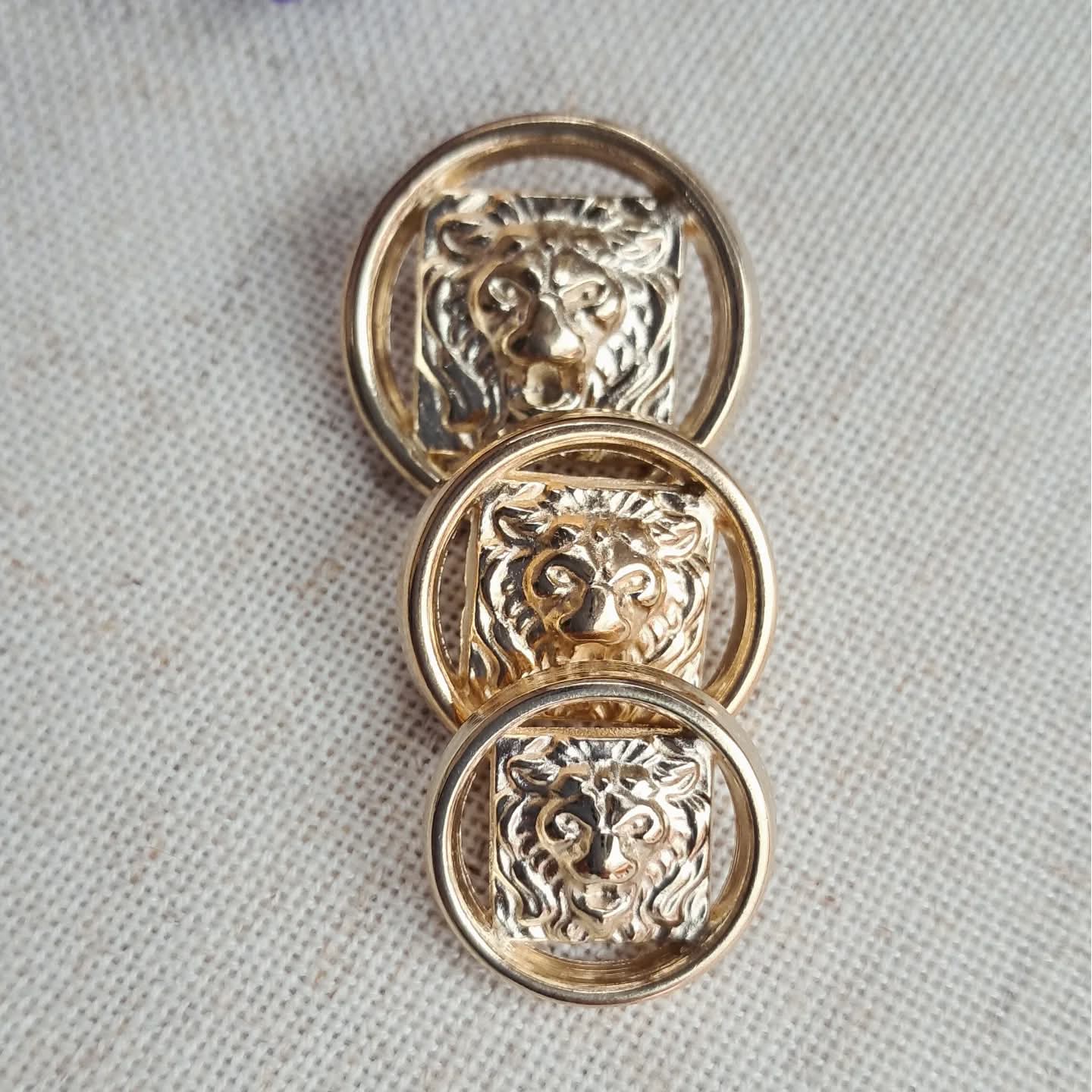 Металевий ґудзик “Лев” (Італія), круглий, золото.